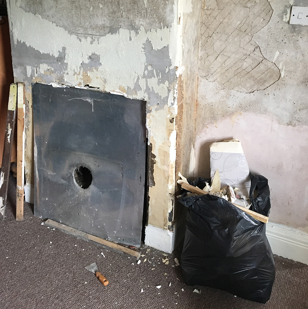 The chimney stack has been capped so we couldn’t actually light a fire (maybe not the safest thing to do in a bedroom anyway!) and that’s probably where all the soot, dirt and odd bits of rubble came from.  But when all cleaned up it’s looking great.