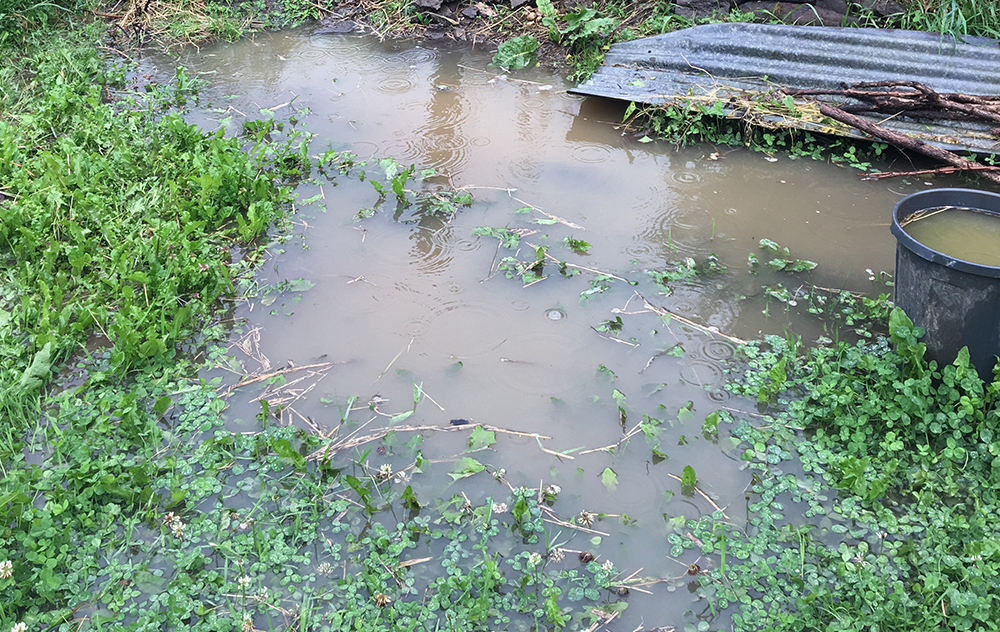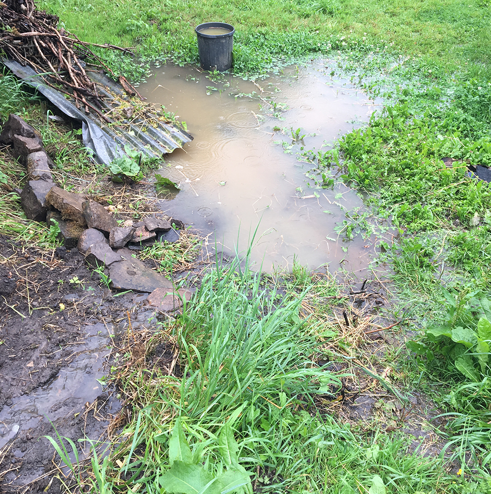 The drains were a little overwhelmed by the volume of water running off the field behind the house. Mike spent several hours digging a drainage channel along the back of the garden to try to divert water from coming down towards the house… even the field mice had trouble swimming around!