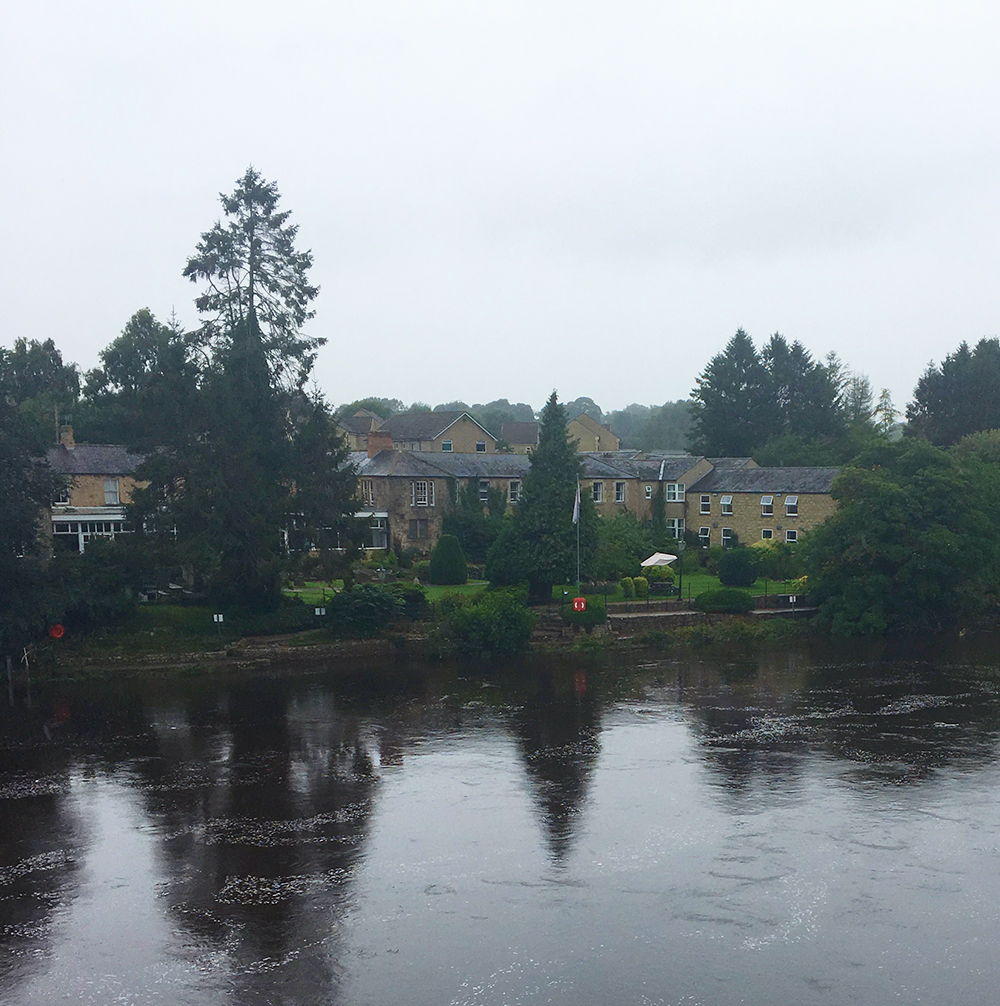 On a walk down to the village we checked out the river which was really high, the hotels riverside platform was submerged and the usually tranquil weir was a torrent.