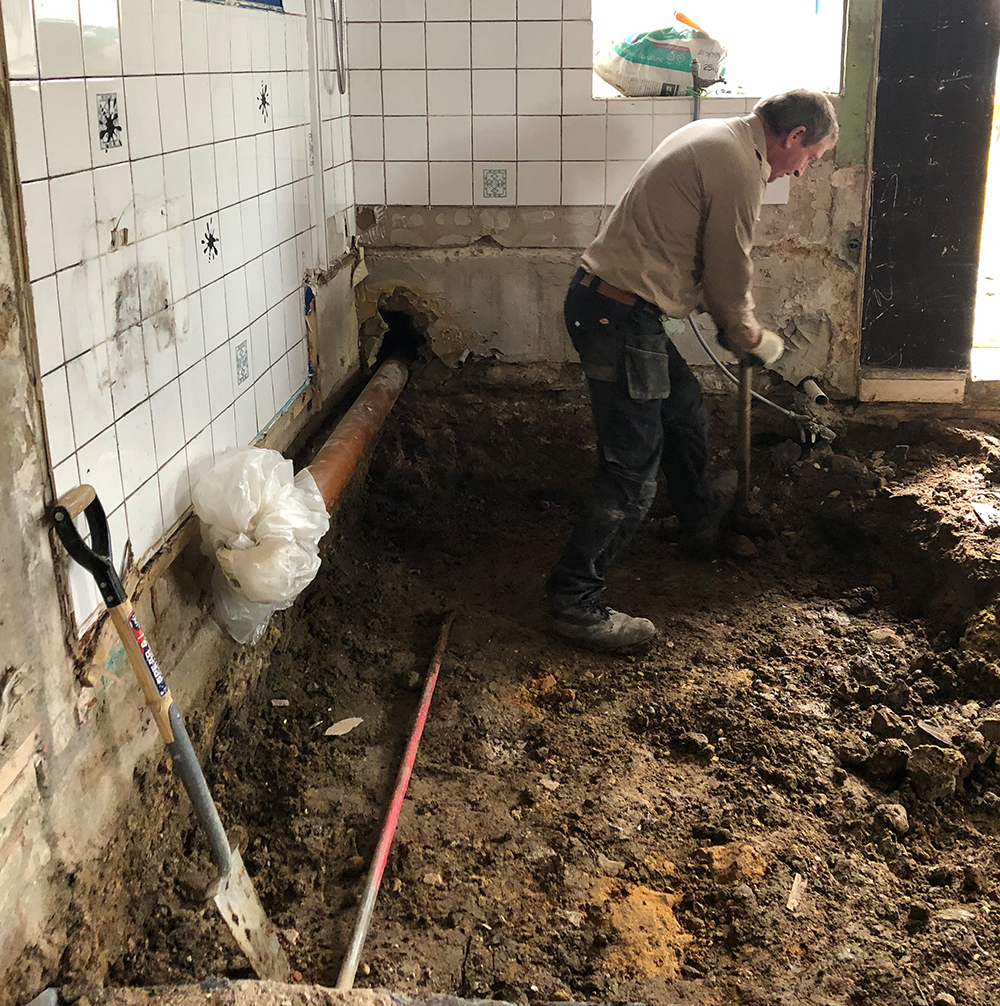 And then the fun job of sorting out the plumbing and drainage as the floor is lower at this end of the house than it was!!!