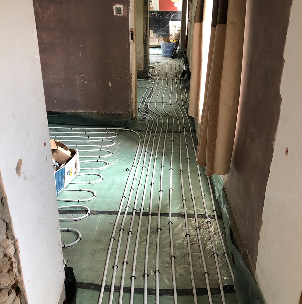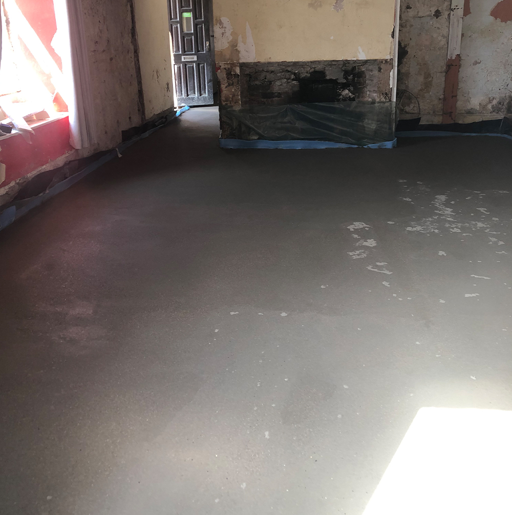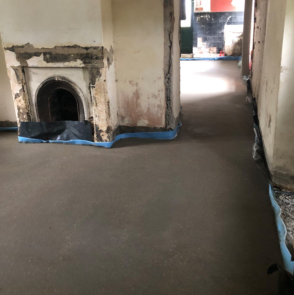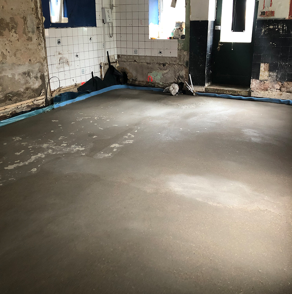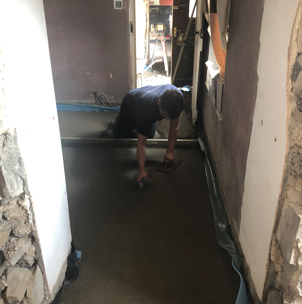We’ve gone for the quick dry screed again so in a week we can start to turn the heating on which will help dry out the damp walls. There was a slight issue of a water leak on the already laid floor… but it all seems to be drying ok.